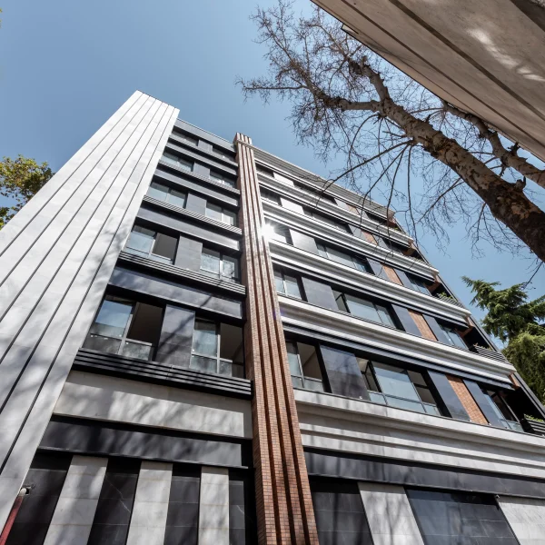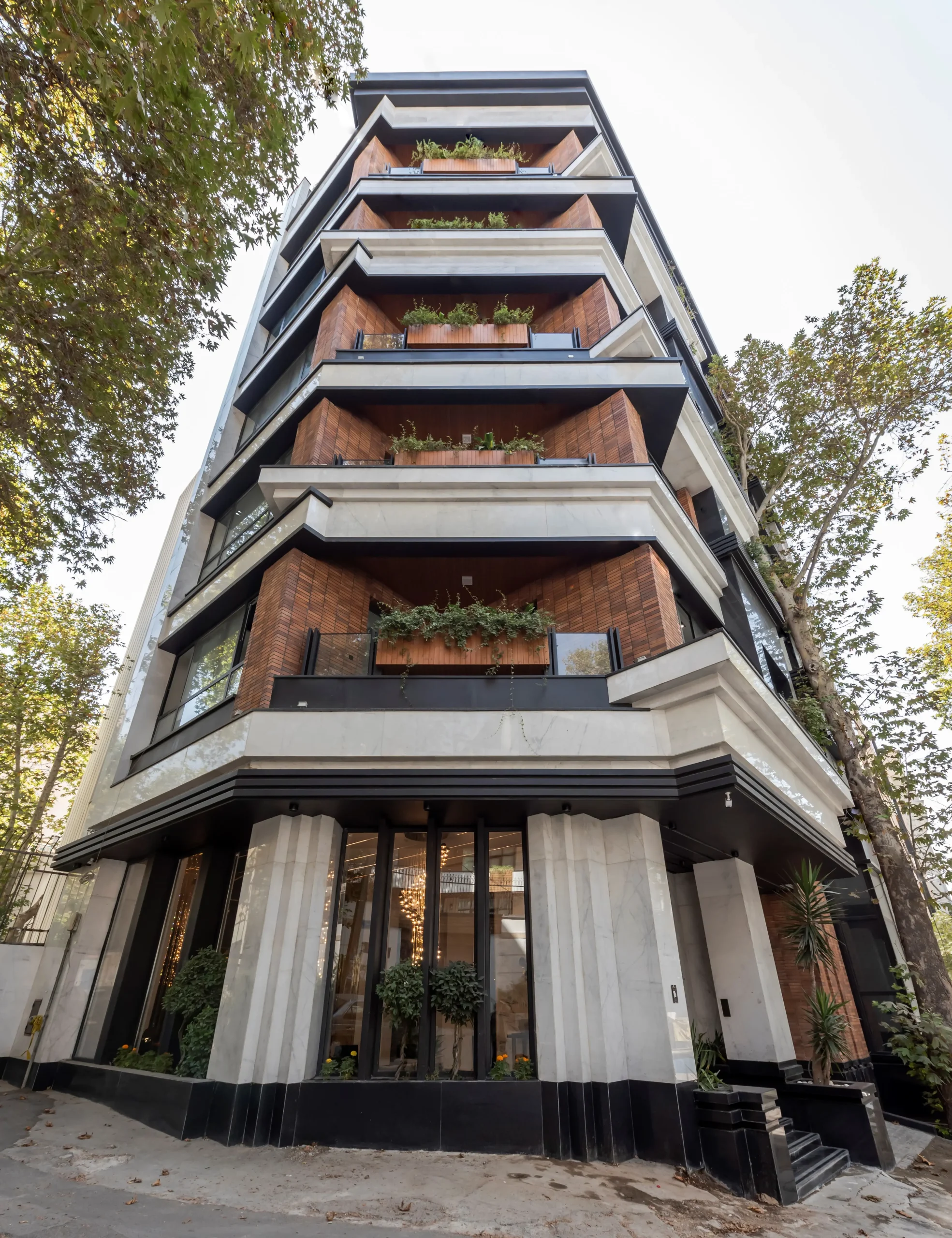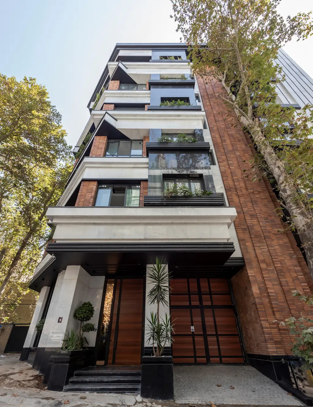 نمای زیبا و منحصر به فرد این پروژه که ترکیبی از آجر ، سنگ اسلب چینی و گرانیت به همراه فلز می باشد این پروژه را به یکی از متمایز ترین ساختمان های منطقه تبدیل کرده است .