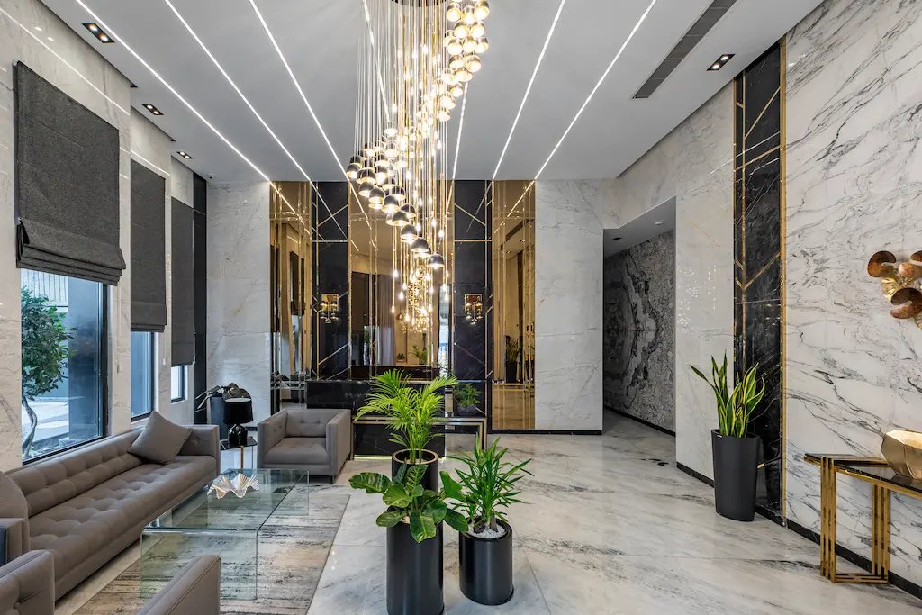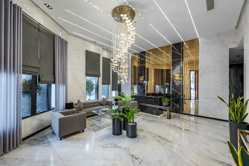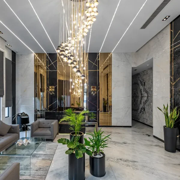 لابی: لابی مجلل با ارتفاع ۶ متر